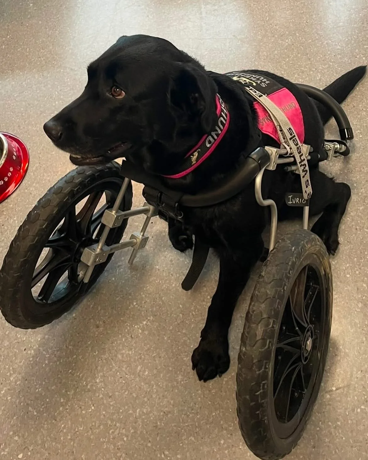 Vega gleder seg hver gang til å besøke Ullevål sykehus. Hun liker godt å leke gjemsel og gå hinderløype. Hun har silkemyk pels og elsker å få masse kos.
